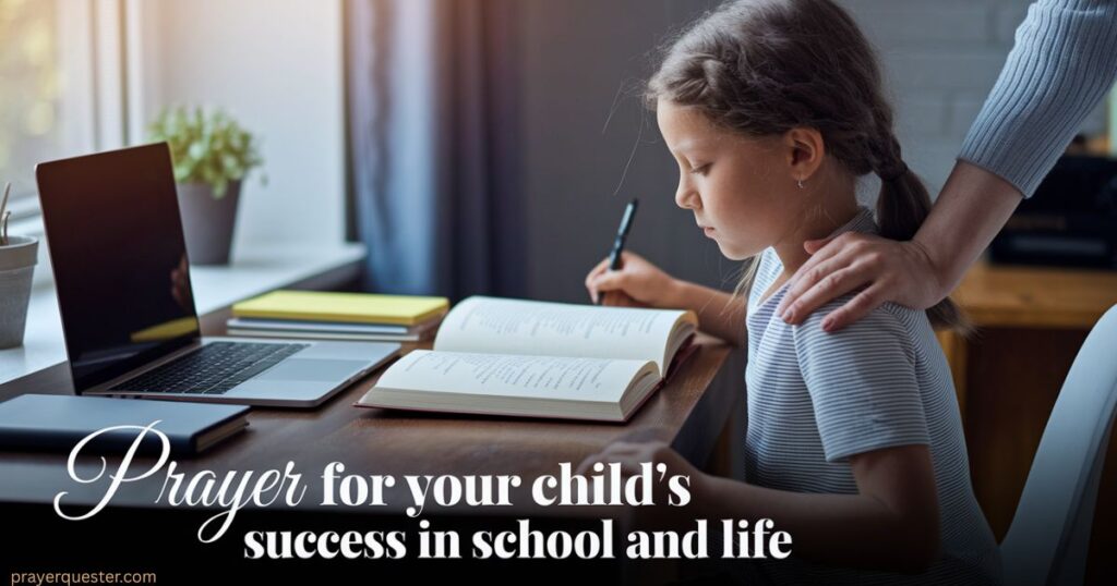 Faithful God, I ask for Your blessing on my child’s learning, growth, and future. Give them clarity of mind, discipline, and a love for wisdom. Help them to work diligently, use their talents, and stay humble in success. May their education open doors that align with Your purpose for their life. Protect them from distractions and guide them to make wise choices. Let them find joy in learning and courage in facing life’s challenges. Above all, may they measure success not only by achievement but by faith, kindness, and integrity. Amen.