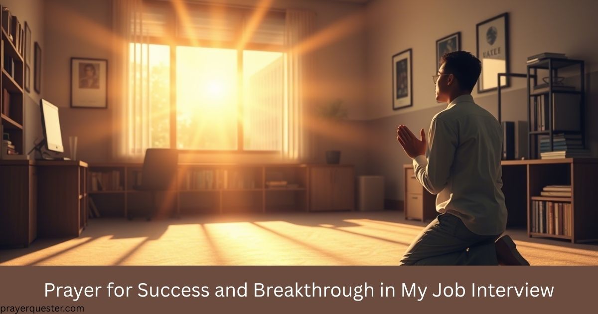 Heavenly God, I come to You believing that You are the God of breakthroughs and open doors. I ask for Your favor to rest upon me and for success in every part of this interview process. Through this Prayer For Interview For Job, I declare that I trust You to make a way, even where things seem uncertain. Let this opportunity be the beginning of something new, something aligned with Your purpose for my life. Grant me the strength to excel, the clarity to respond, and the confidence to shine. I believe that when You are for me, no obstacle can stand in the way. In Jesus’ name, I pray. Amen.